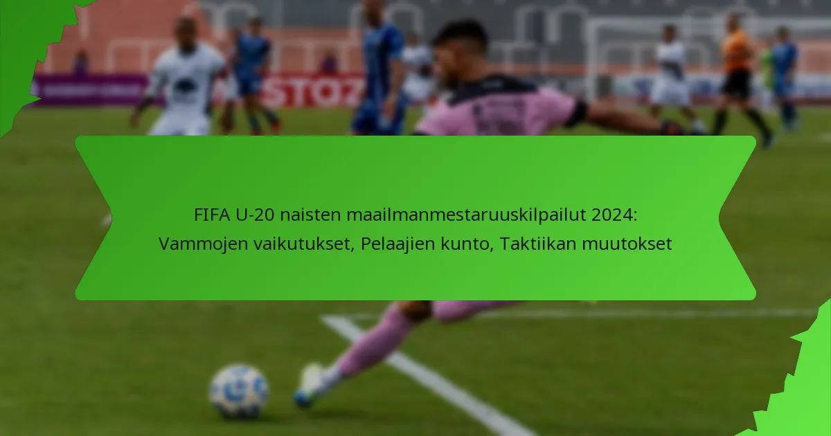Read MoreFIFA U-20 naisten maailmanmestaruuskilpailut 2024: Vammojen vaikutukset, Pelaajien kunto, Taktiikan muutokset